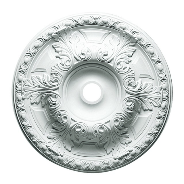 Focal Point 24 in. Emma Medallion (81024) -- Ceiling Medallion Dimensions: Ceiling Medallion Diameter: 23-11/16 in., Ceiling Medallion Canopy: 5 in., Ceiling Medallion Projection: 2-3/4 in., Ceiling Medallion Center Hole: 4 in.