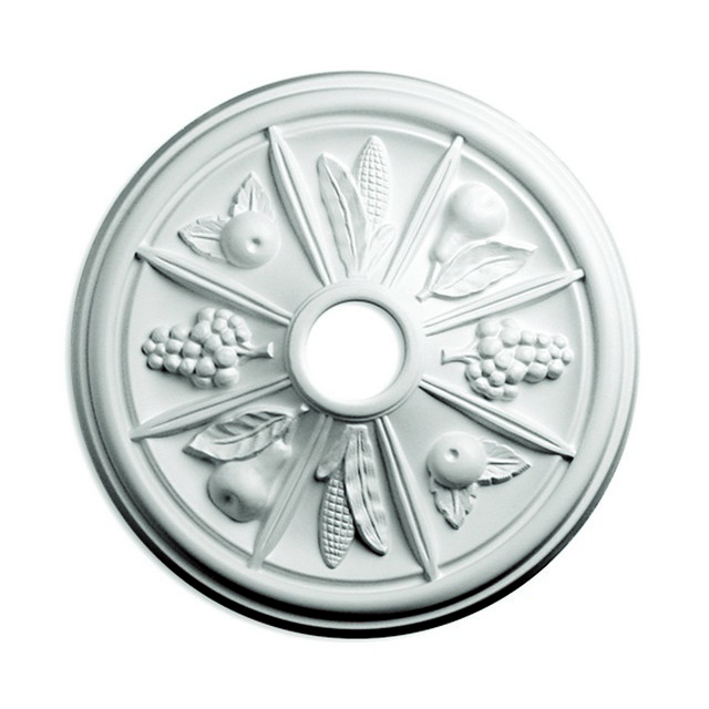 Focal Point 24 in. Kaitlyn Medallion (82224) -- Ceiling Medallion Dimensions: Ceiling Medallion Diameter: 24 in., Ceiling Medallion Canopy: 5 in., Ceiling Medallion Projection: 2-1/2 in., Ceiling Medallion Center Hole: 4 in.